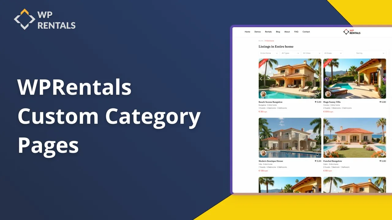 Design engaging category pages in WP Rentals Studio using maps, galleries, and custom fields to showcase properties by area or type.