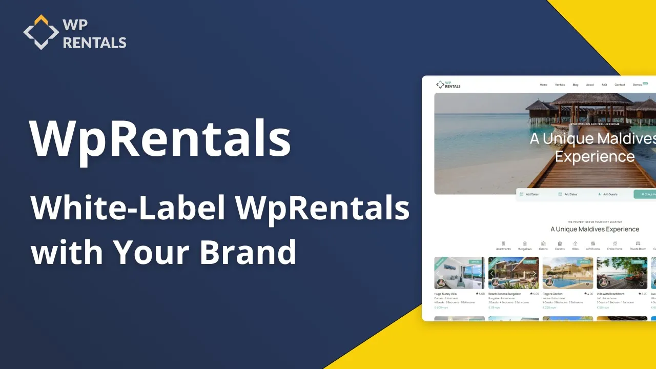 The WpRentals white label feature lets you replace the WpRentals name with your own brand in the WordPress admin area.